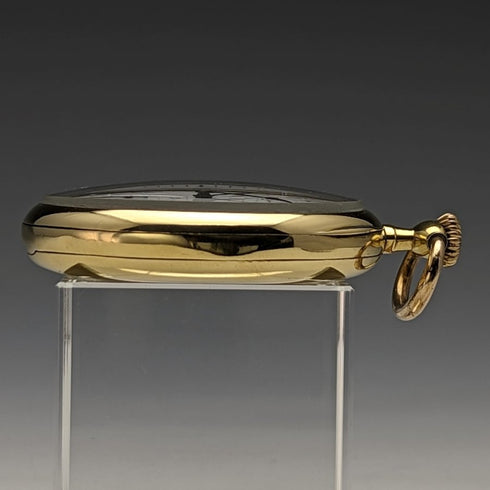 This is a beautiful pocket watch made around 1910 with a solid 18k gold case and a pure white dial.