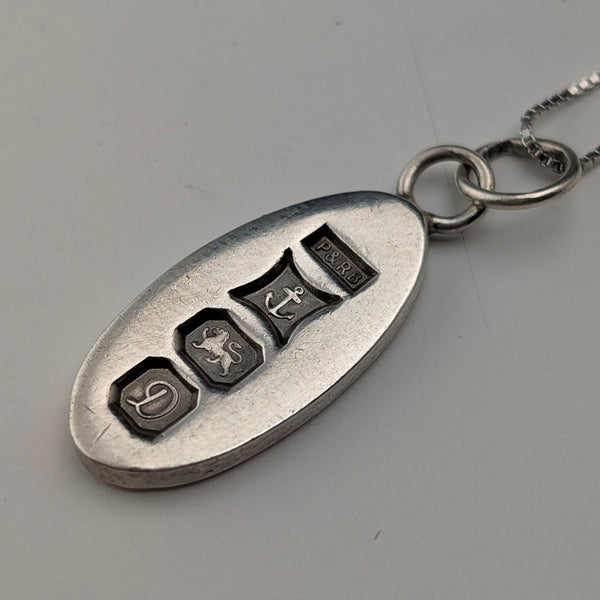 英国ヴィンテージの純銀製ペンダントをご紹介いたします。1978年製のインゴット型ペンダントです。ペンダントとして使いやすいオーバル(楕円)型のフォルムとなっています。このタイプのインゴットしてはかなり小型で、アクセサリーとして使いやすそうです。新品の純銀製ベネチアン型ネックレスチェーンが付属します。この「一期一会」があなたの特別な出会いになることを願っています!【コンディション】外観:★★★★☆ 目立った傷や汚れのない美品 機能:★★★★☆ わずかな劣化はあるがほとんど問題ない・経年のわずかな摩耗や汚れはありますが目立つ傷はなく美しい状態です・インゴットには純銀を保証するホールマークが刻印されています・チェーンには金具に「S925」の刻印があります ※古いものですので経年による細かな傷や汚れはございます ※写真をを確認しご了承のうえで購入をお願い致します【詳細】・メーカー P&RB・製造年 1978年(バーミンガムD)・材質 ペンダント:スターリングシルバー(925/1000) ネックレス:スターリングシルバー(925/1000)・サイズ インゴット:縦21 x 幅10 x 厚2mm ネックレス:長さ45cm 幅0.6mm・重量 インゴット:3.4g ネックレス:1g ※アンティーク品ですので全く同じものは他にありません※不明な点がありましたらなんでもお気軽にご質問ください