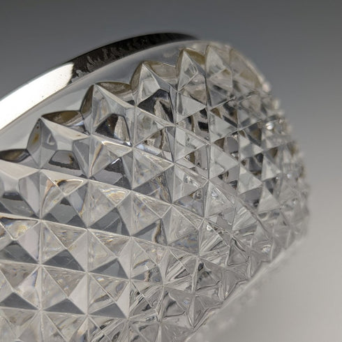 ドイツ ヴィンテージ カットガラスボウル 純銀リム装飾 直径18cm Emil Herman