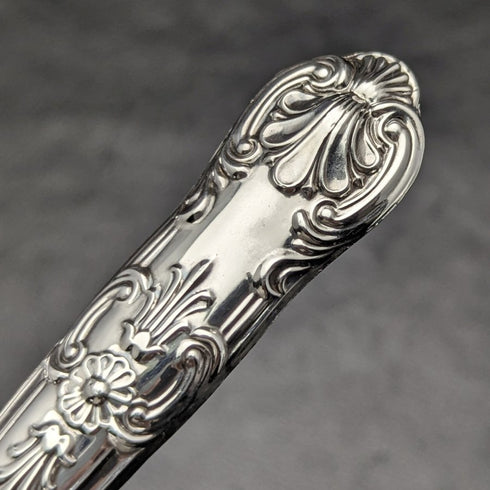 純銀のハンドルは英国アンティークらしいクイーンズパターンとなっています。