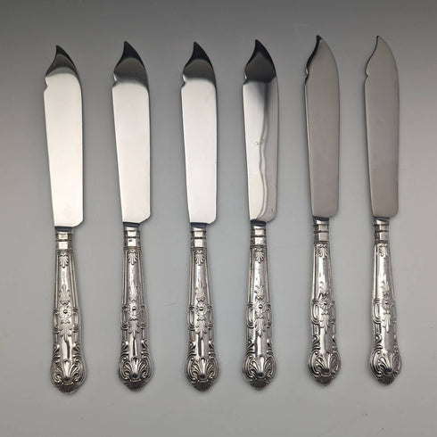 純銀製のハンドルとステンレスブレードの組み合わせのナイフとフォークの6ペアセットです。