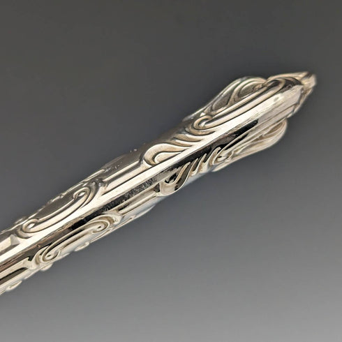 ・純銀製のハンドルには英国試金鑑定所による純銀を保証するホールマークがしっかりと残っています。