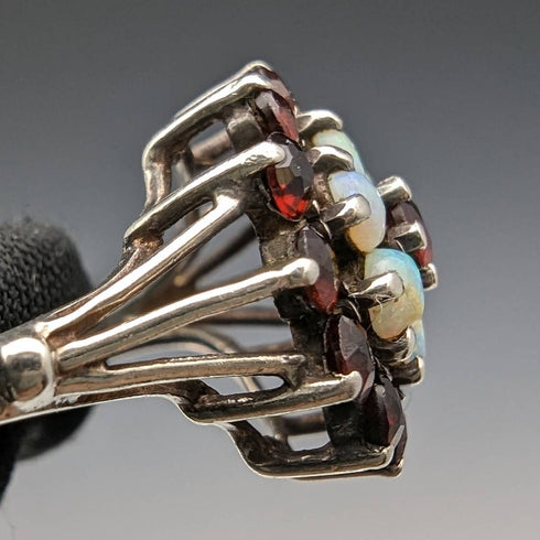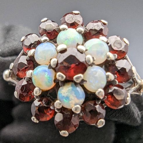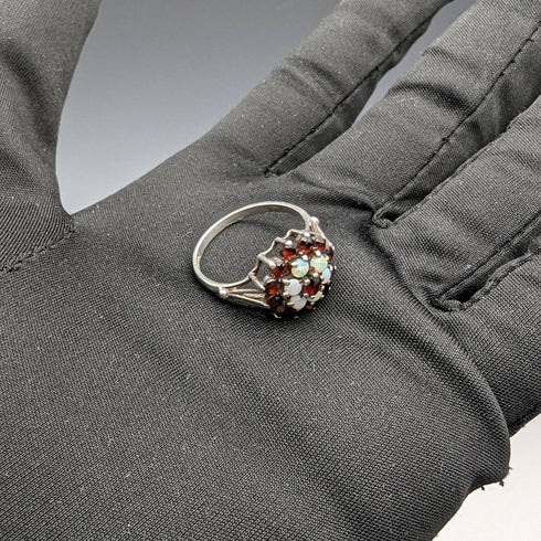 英国ヴィンテージ ジュエリー ガーネット&パール スターリングシルバーリング