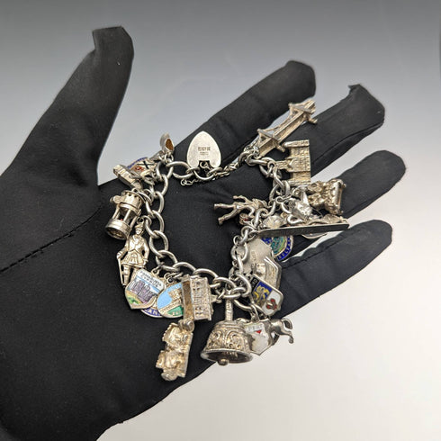 英国ヴィンテージ シルバー チャームブレスレット 75g
