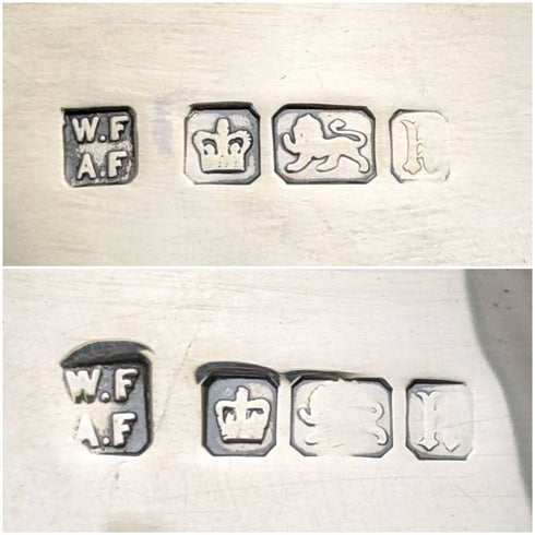 ・英国試金鑑定所による純銀を保証するホールマークがしっかりと残っています。