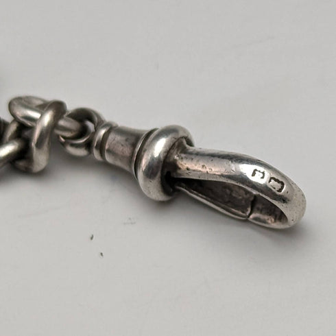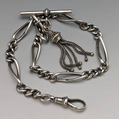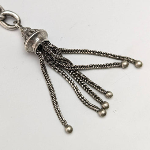 1900年頃 英国アンティーク 純銀製アルバートチェーン 30g ファンシーリンク タッセルフォブ