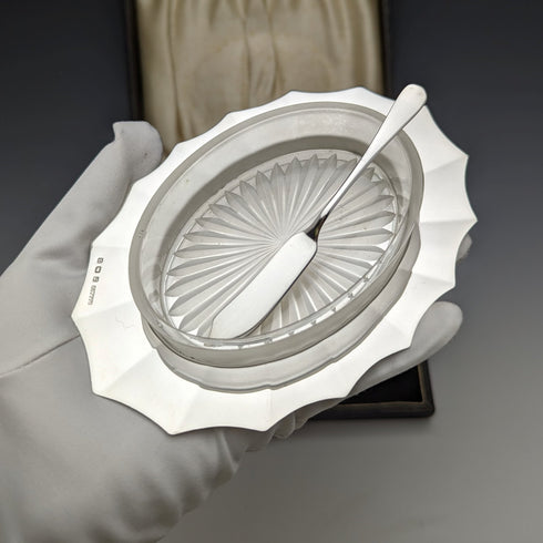 1930年代 英国ヴィンテージ 純銀&グラスインナー バターディッシュ ケース入