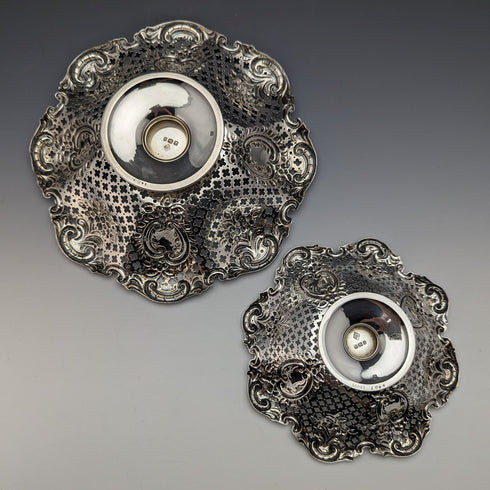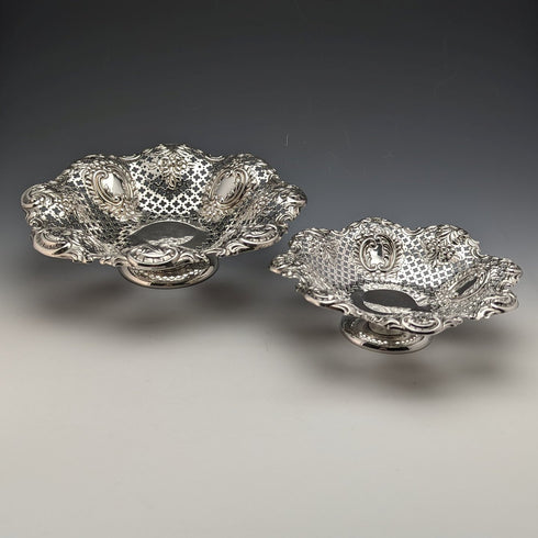 1897年 英国アンティーク 純銀製 ピアス装飾 脚付きボウル 大小ペア 計340g MAPPIN BROS