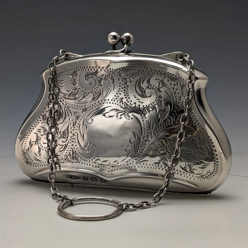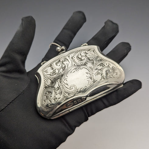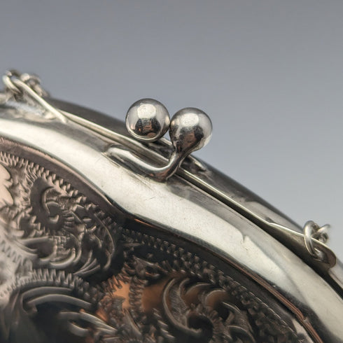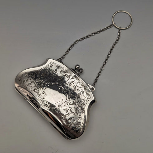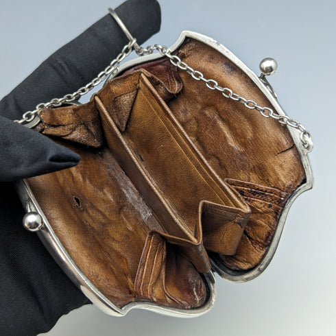1917年 英国アンティーク 純銀 チェーン付き コインケース FD Long