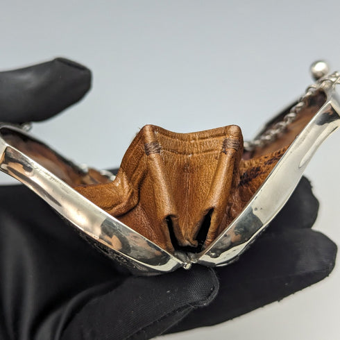 純銀製のがま口のような可愛らしいフォルムの小さめのコインケースです。