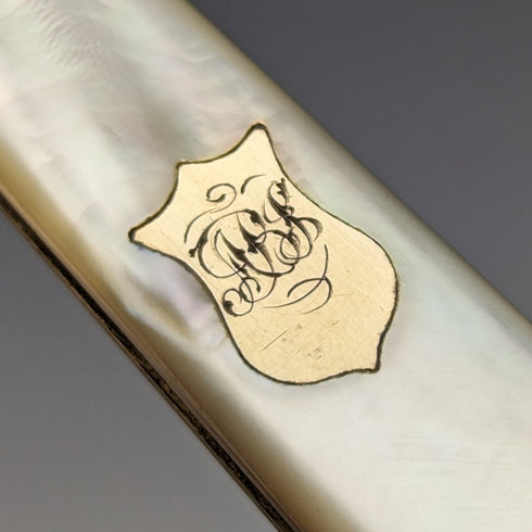 1888年 英国アンティーク 白蝶貝ハンドル 純銀ブレード 折りたたみペンナイフ ケース入