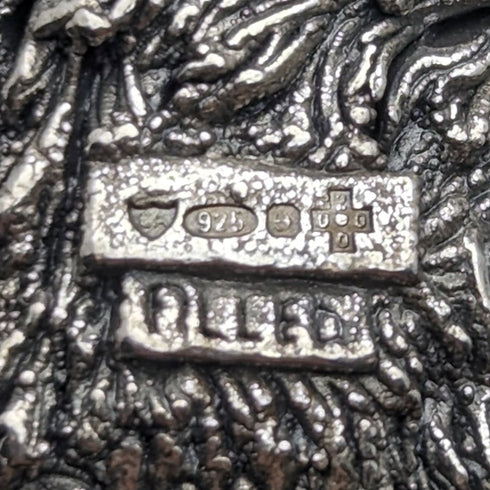 両手を広げたテディベアのぬいぐるみのスターリングシルバー彫刻のオブジェです。