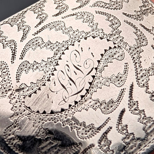 両方の蓋にはとても繊細な装飾が施され、上蓋中心にはファーストオーナーの名前のようなものが刻印がされいます。