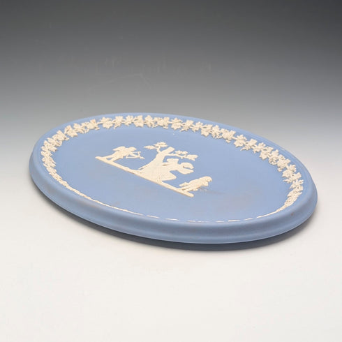 英国ヴィンテージ ウェッジウッド ジャスパーウェア製 オーバルディッシュ ペールブルー