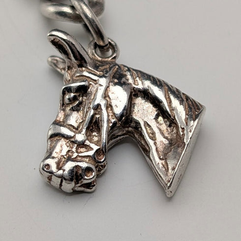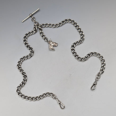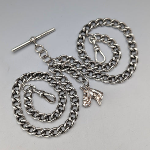 1900年頃 英国アンティーク 純銀製ダブルアルバートチェーン 54g  馬頭フォブ