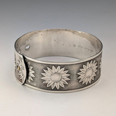 1945年 英国ヴィンテージ 純銀製 フラワー装飾 ブレスレット 50g Joseph Smith