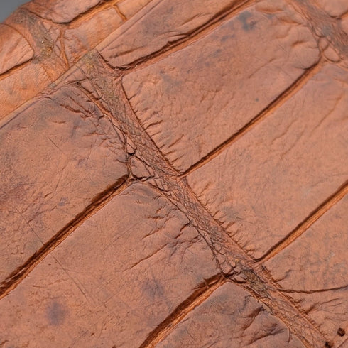 クロコダイル調の型押しの牛革製で、純銀製のパーツで装飾されています。