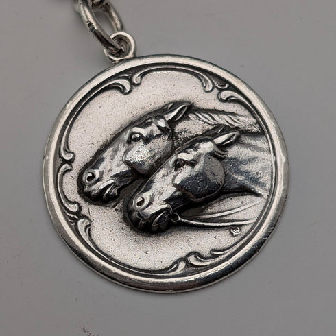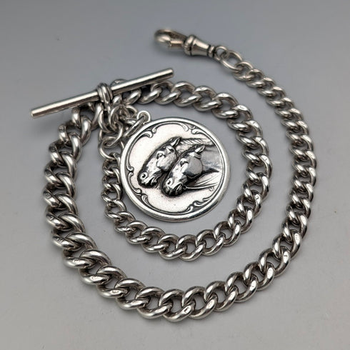1900年頃 英国アンティーク 純銀製アルバートチェーン 51g ホースメダルフォブ