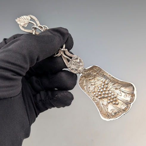 1971年 英国ヴィンテージ 純銀製 ティーキャディースプーン 27g 葡萄装飾 MK