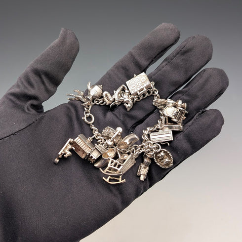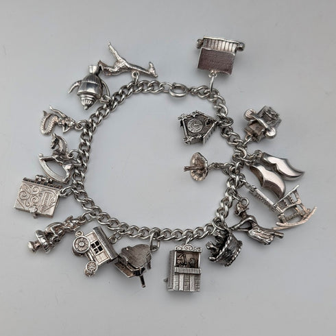 英国ヴィンテージ 純銀製 チャームブレスレット 48g