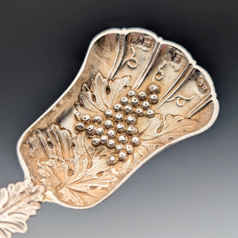 1971年 英国ヴィンテージ 純銀製 ティーキャディースプーン 19g 葡萄装飾 Bert Gordon