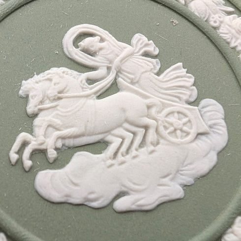 英国ヴィンテージ ウェッジウッド ジャスパーウェア製 筒型ボックス 小物入れ グリーン