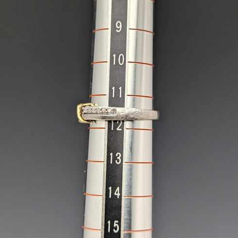 這款戒指由 925 純銀和 9k 金製成,鑲有一顆米粒鑽。