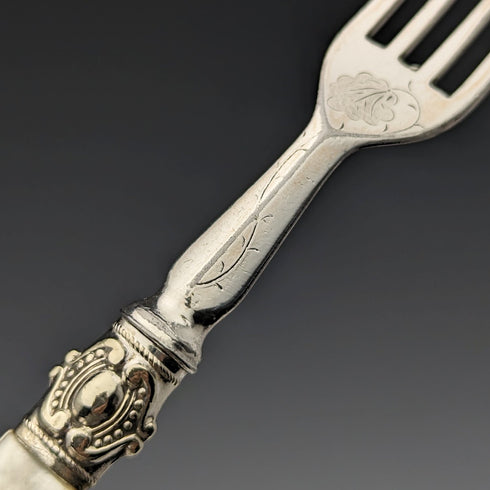 這是維多利亞時代晚期的帶有白色珍珠手柄的餐具。