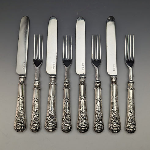 這是 4 對套裝,配有純銀手柄和鍍銀刀片。