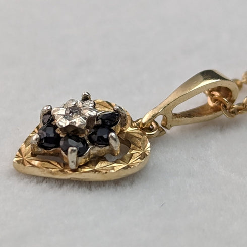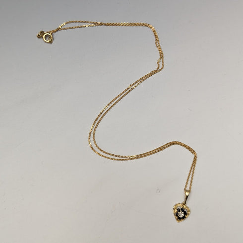 英國復古 K9 黃金與藍寶石心形吊飾項鍊