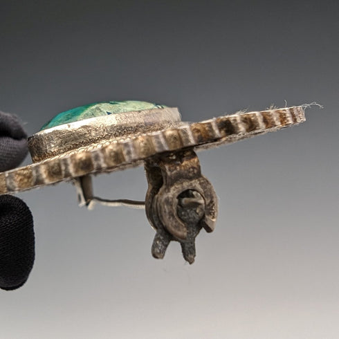 英國復古綠寶石和花絲銀胸針