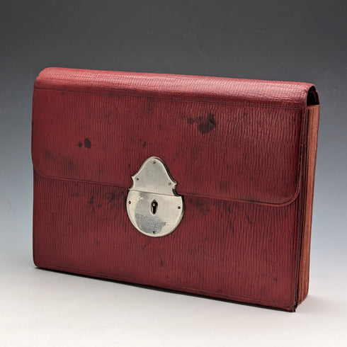 英國復古紅色皮革文件袋附鑰匙(備忘錄和信袋)