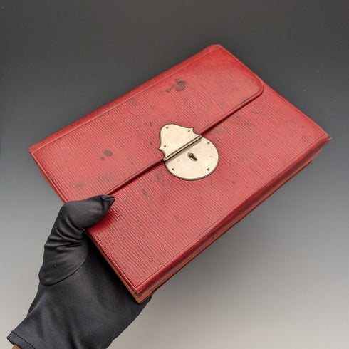 這是一個古老的皮革文件盒,但其年代和製造商均不詳。