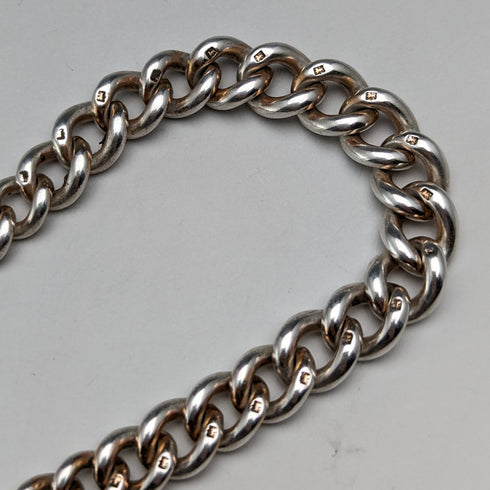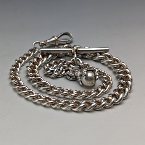 約 1910 年英國古董純銀阿爾伯特鏈 44 克爪子和碗扣